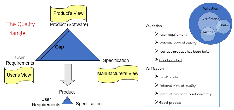 The relationship between these three viewpoints can be represented as the Quality Triangle.